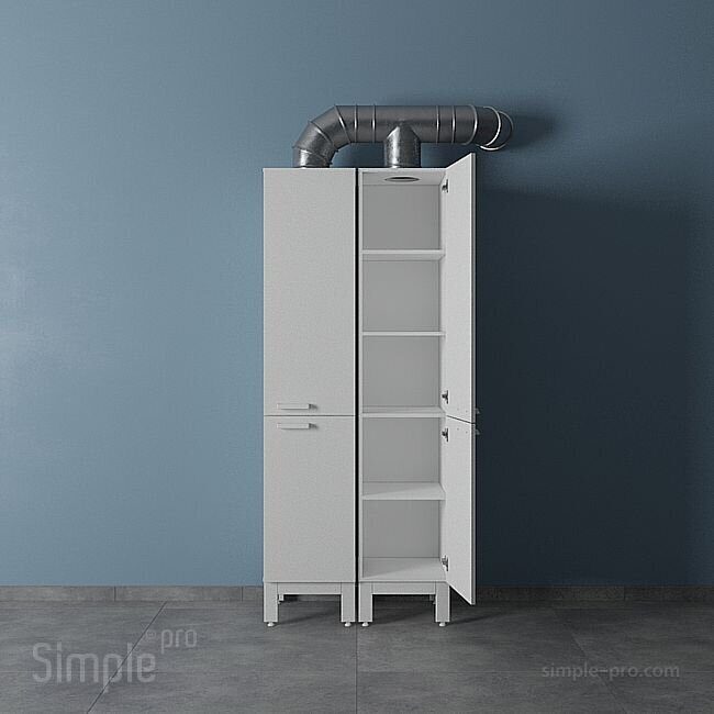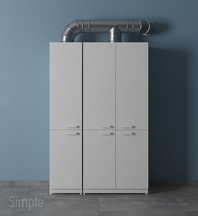 - Шкаф с корпусом из стали или ЛДСП (на выбор) и стальным фланцем диаметром 200 мм;