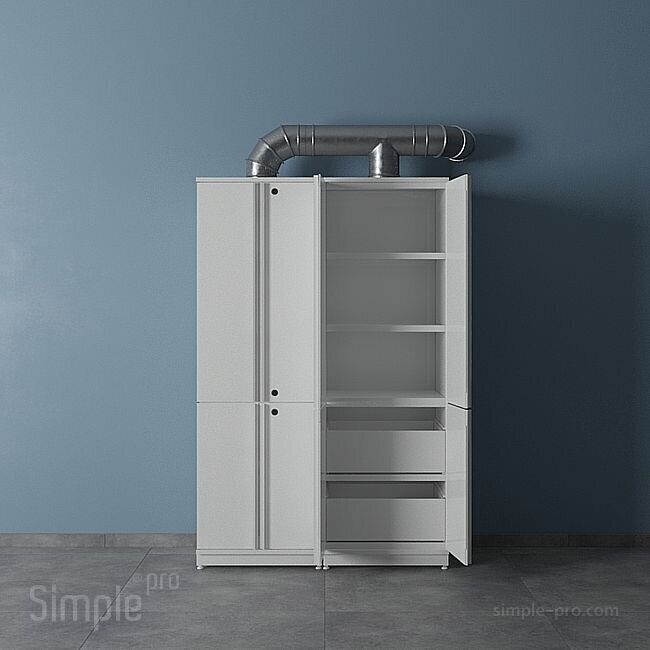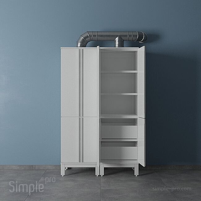 - Два варианта исполнения: модель ШРП: два отделения с дверками, разделённые полкой, и три регулируемых полипропиленовых полки (2 в верхнем отделении, 1 в нижнем). Дверки имеют угол открытия не менее 2700. Модель ШРП с ящиками: два отделения с дверками, разделённые полкой, и две регулируемых полипропиленовых полки для верхнего отделения и два полипропиленовых ящика для нижнего отделения. Дверки имеют угол открытия не менее 2700;