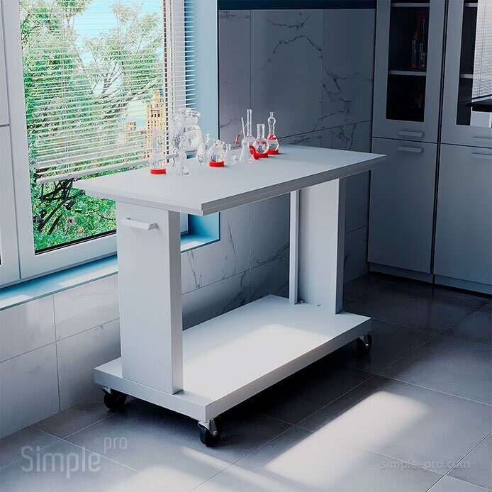 Стол передвижной СЛП предназначен для установки оборудования, реактивов или лабораторный посуды, требующих перемещения из одной части лаборатории в другую. Тем самым повышается мобильность необходимых инструментов в лаборатории. Допустимая распределенная нагрузка на стол до 180 кг.